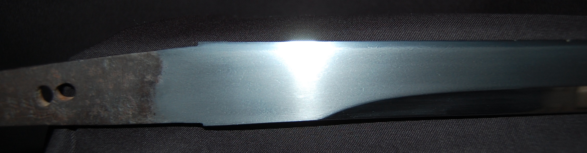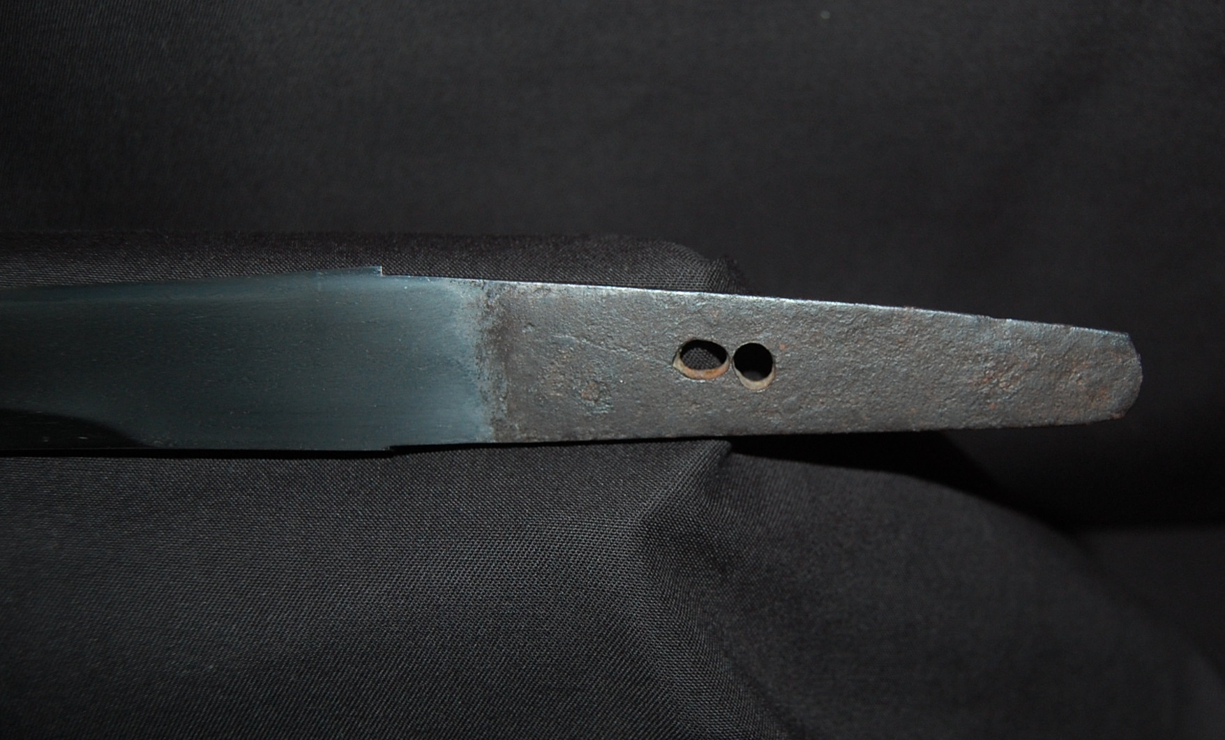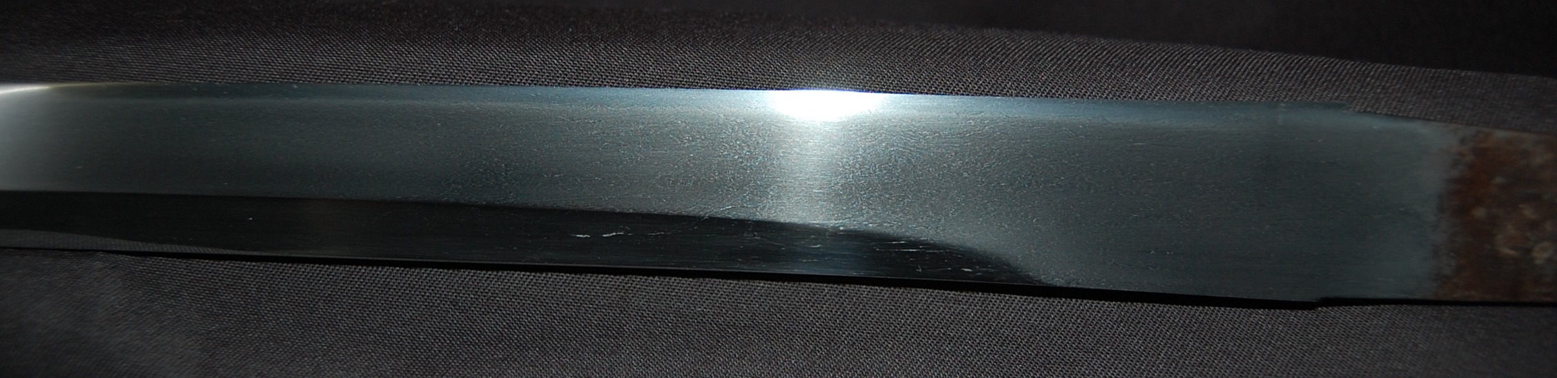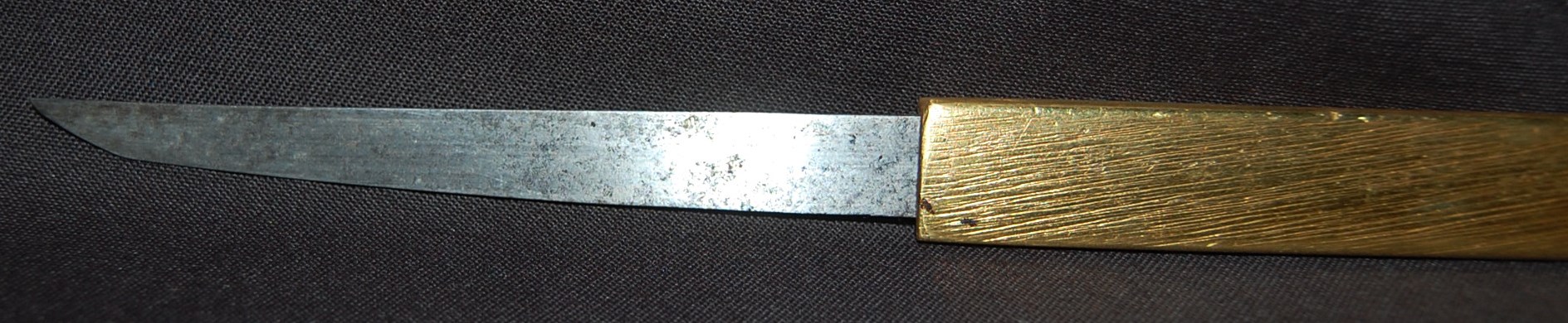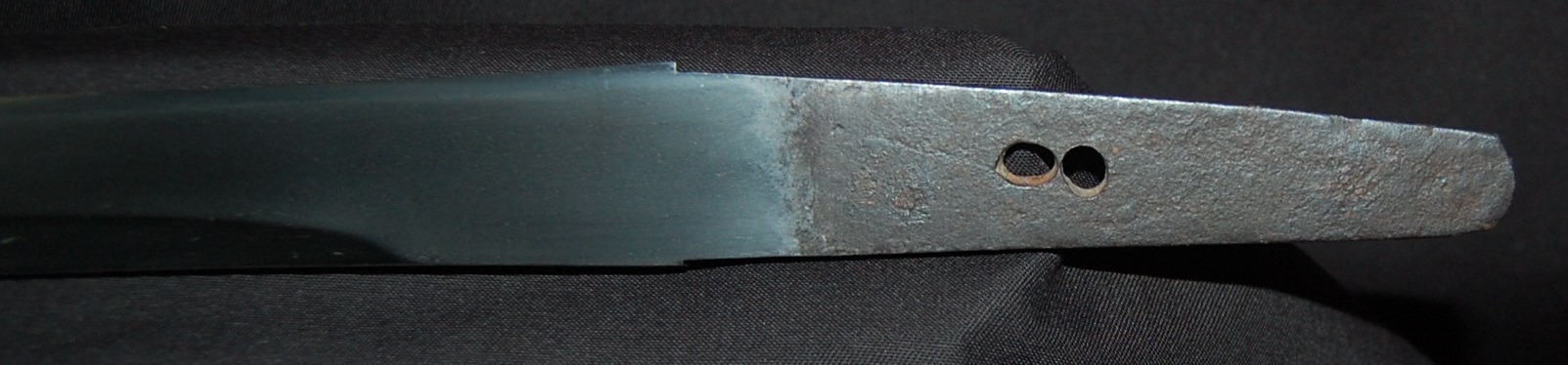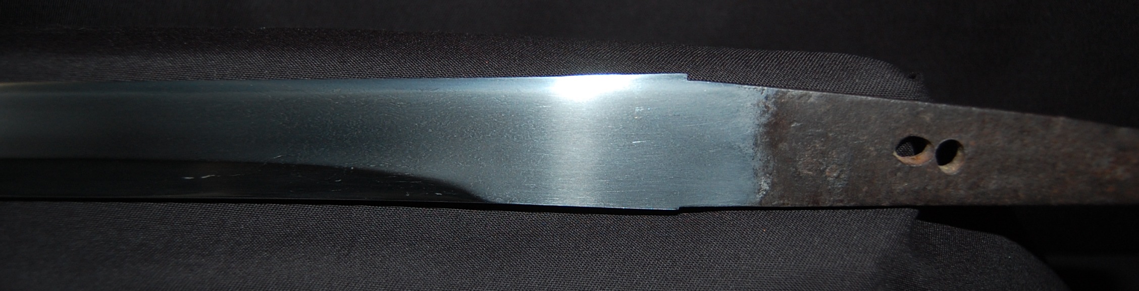 This Tanto is signed Bizen Osafune something Mitsu, maybe Yasumitsu, needs confirming.  The Fuchi is signed Omori Tatsunobu, the kugitana signed Ikeda Kishinmaru Kunishige.
