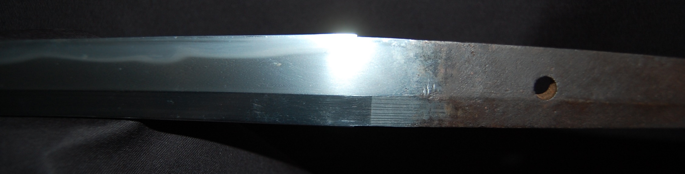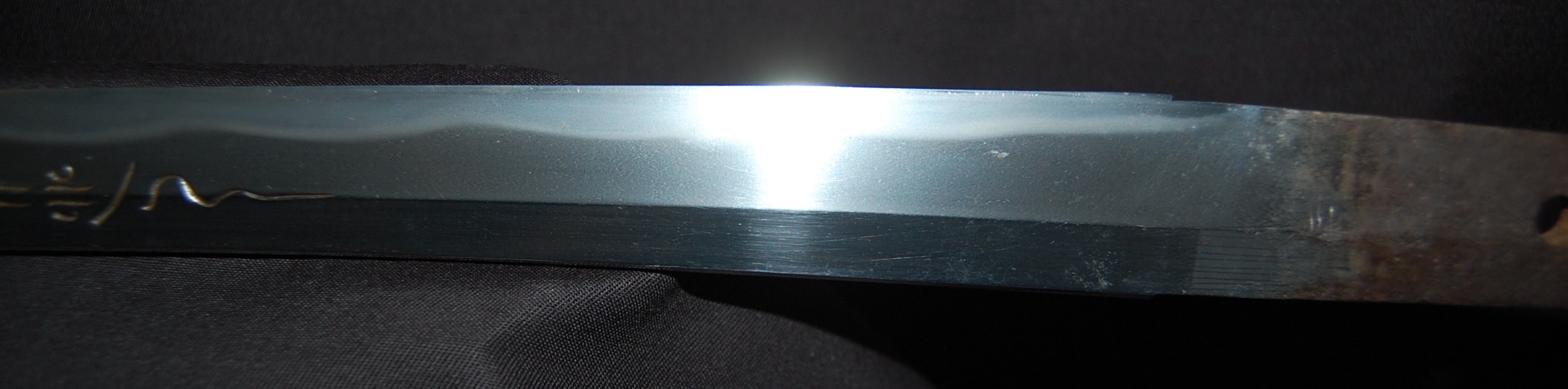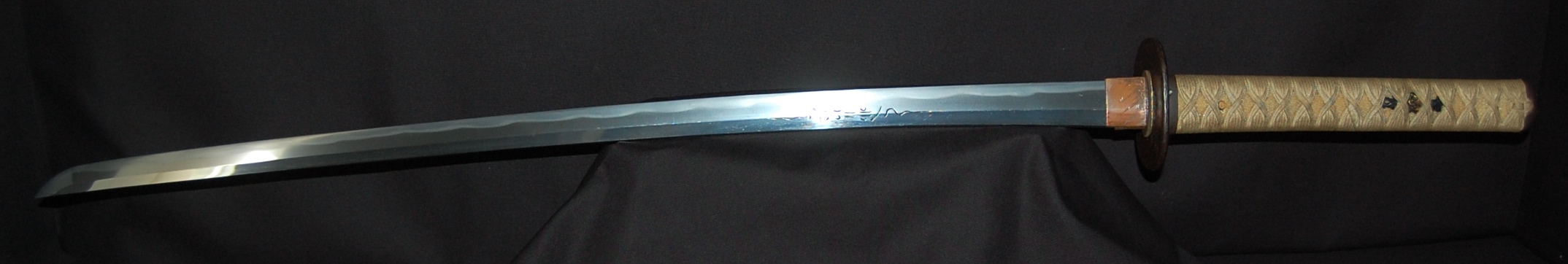 A beautiful blade with very vivid Hamon and tight Hada that has plenty of activities. The polish itself is very good, though suffering from a few minor rust spots and stains due to long term storage, no serious imperfection or damages. Koshirae fittings are well fitted and solid with no damage.