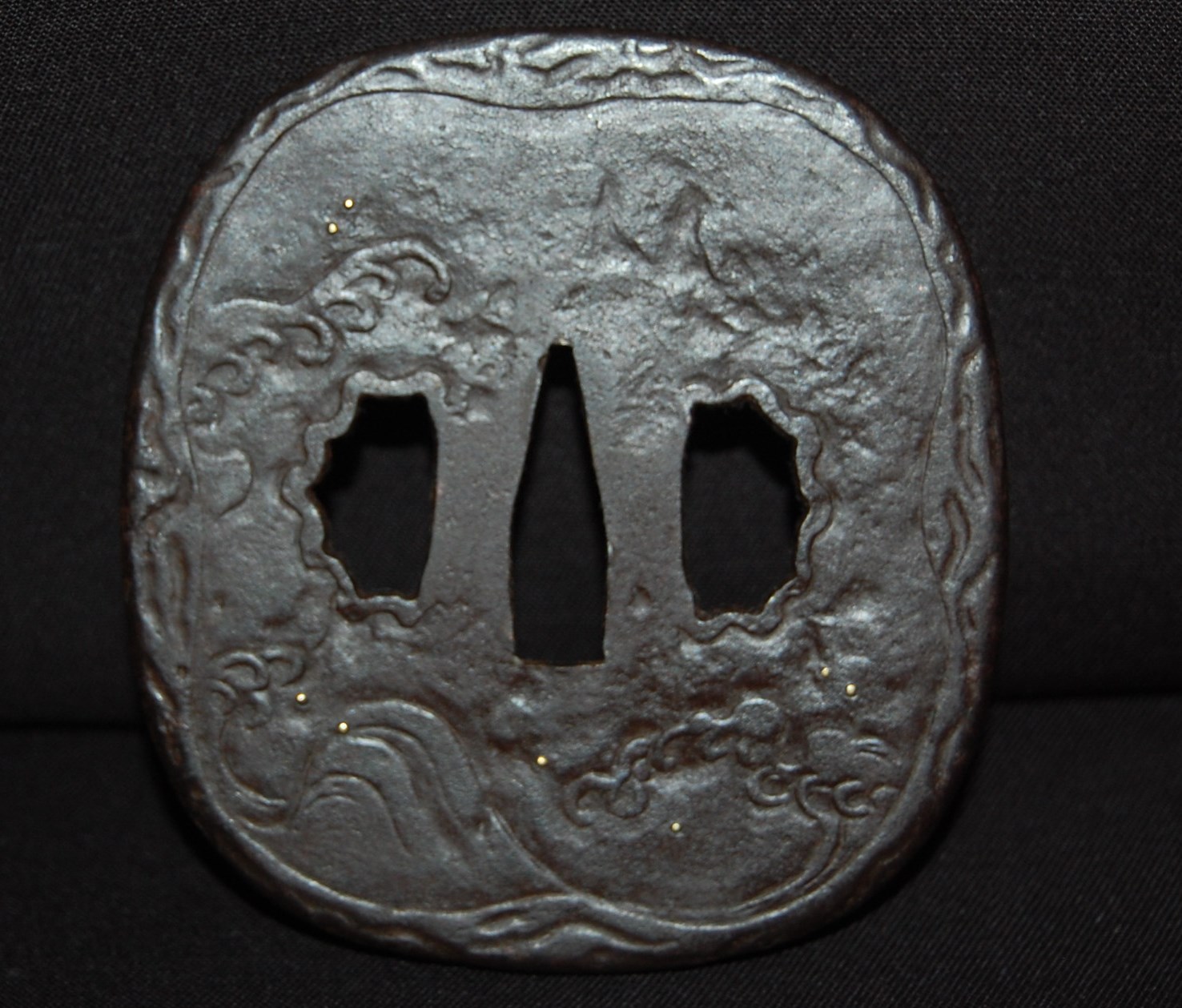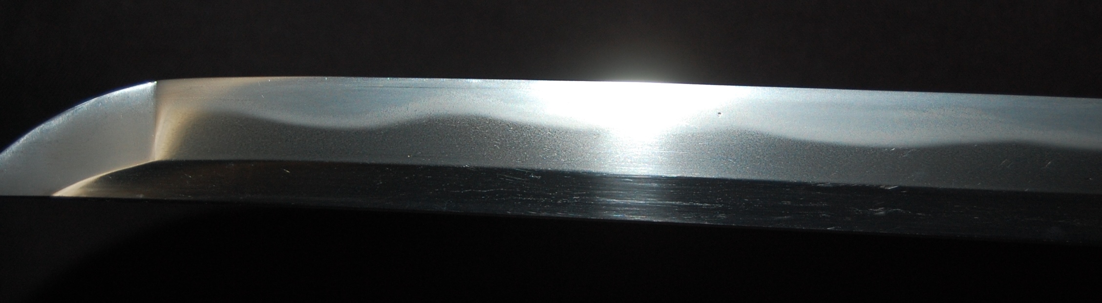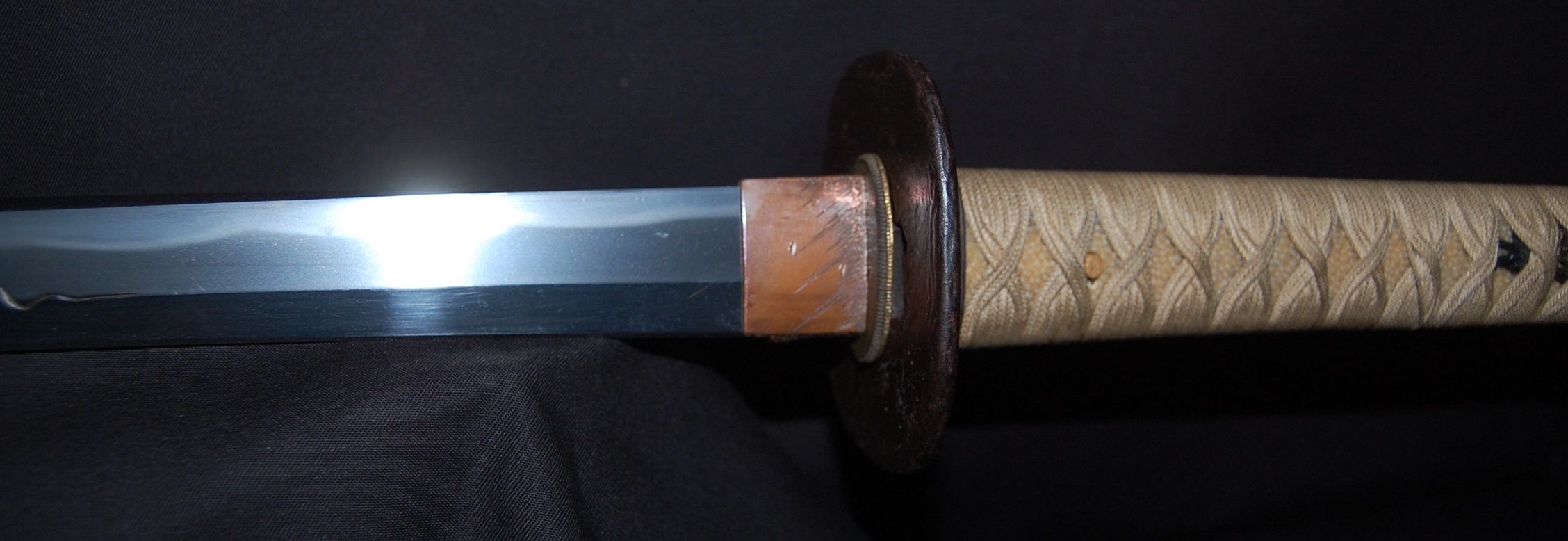A beautiful blade with very vivid Hamon and tight Hada that has plenty of activities. The polish itself is very good, though suffering from a few minor rust spots and stains due to long term storage, no serious imperfection or damages. Koshirae fittings are well fitted and solid with no damage.