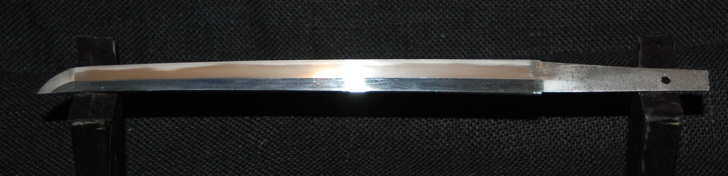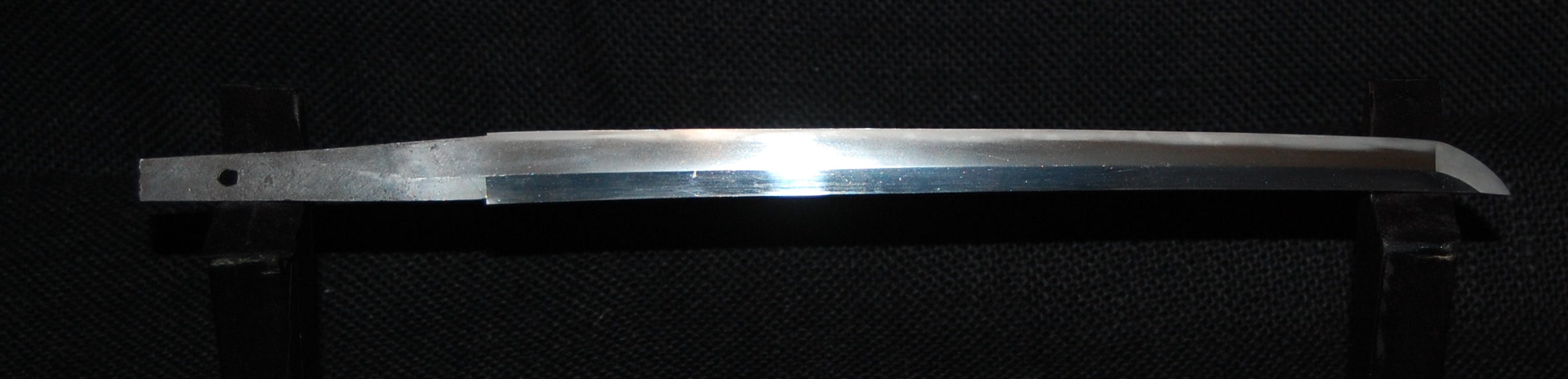 Shinogi-zukuri Tanto, potential O-Suriage from a Kikuchi Yari looking at the position of the mekugi anna.